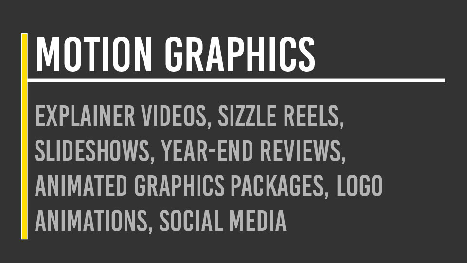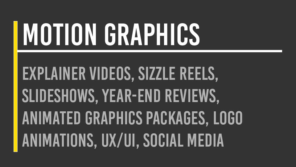Check out the links at the top to see my motion reel along with my Graphic design and video work.