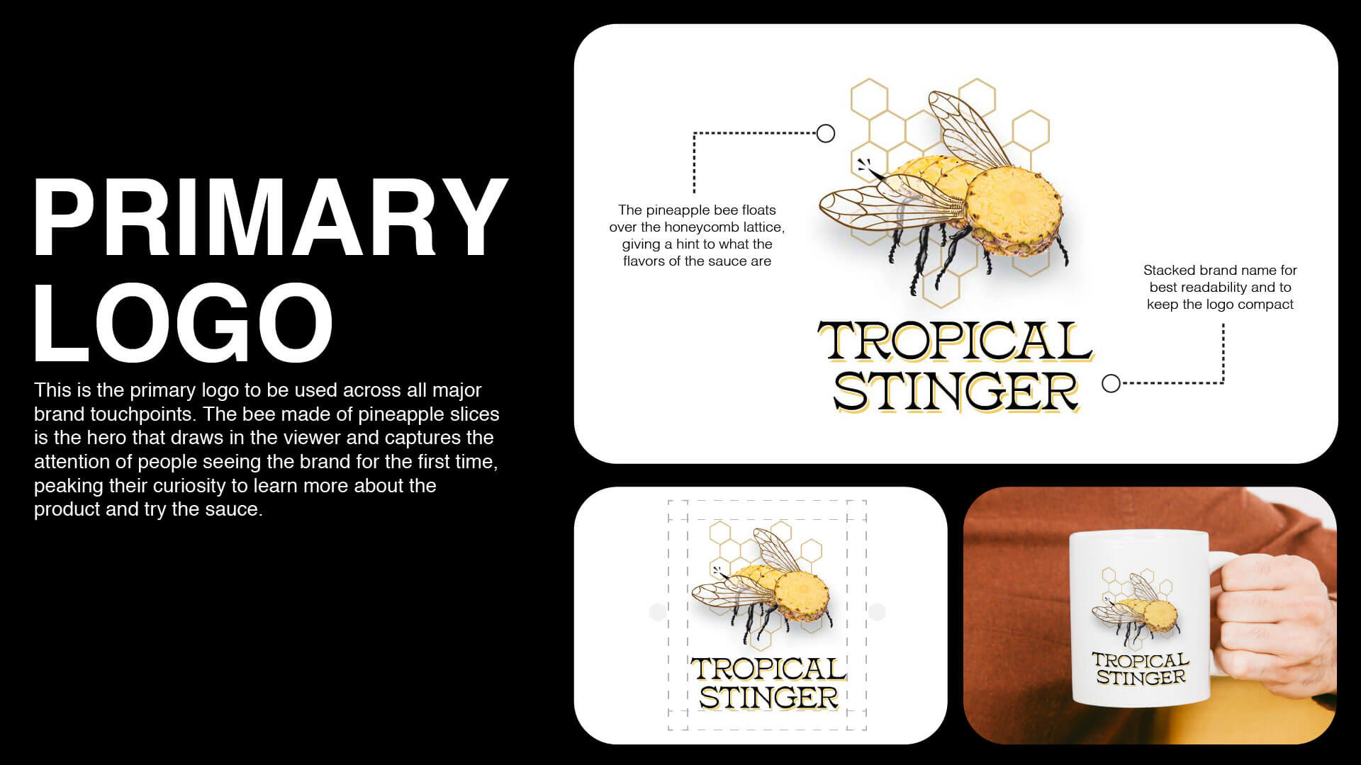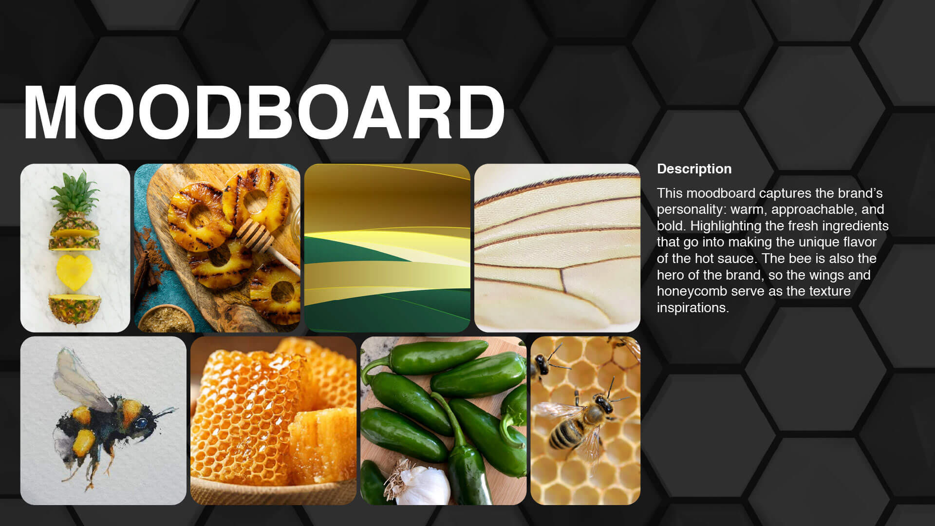Final label design. I think the bee made out of pineapple slices is a great eye catching visual that piques interest and gets people curious about trying the sauce.
